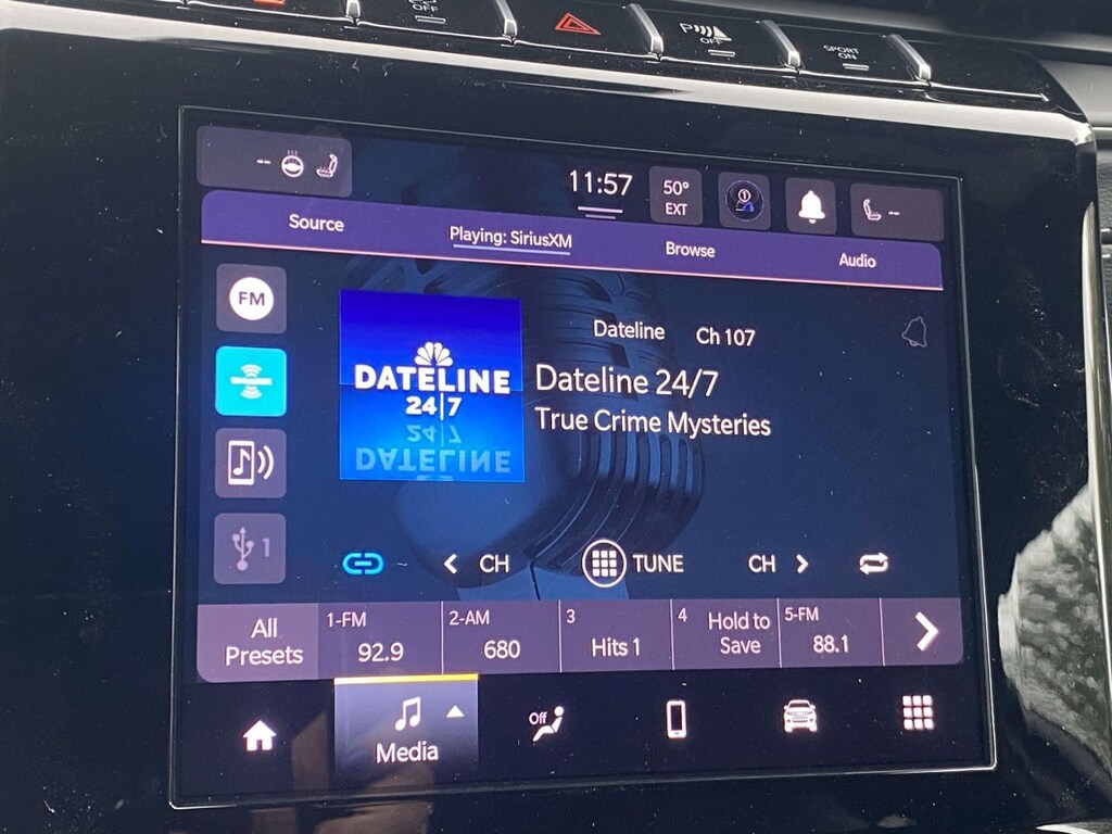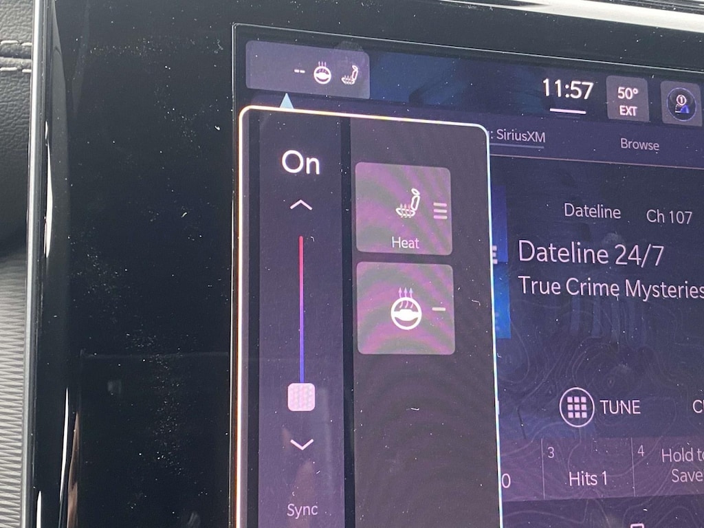 - The steering wheel rim is heated.