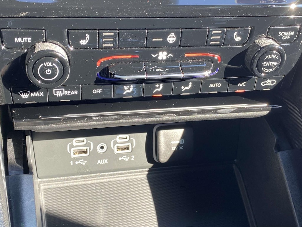 - The steering wheel rim is heated.